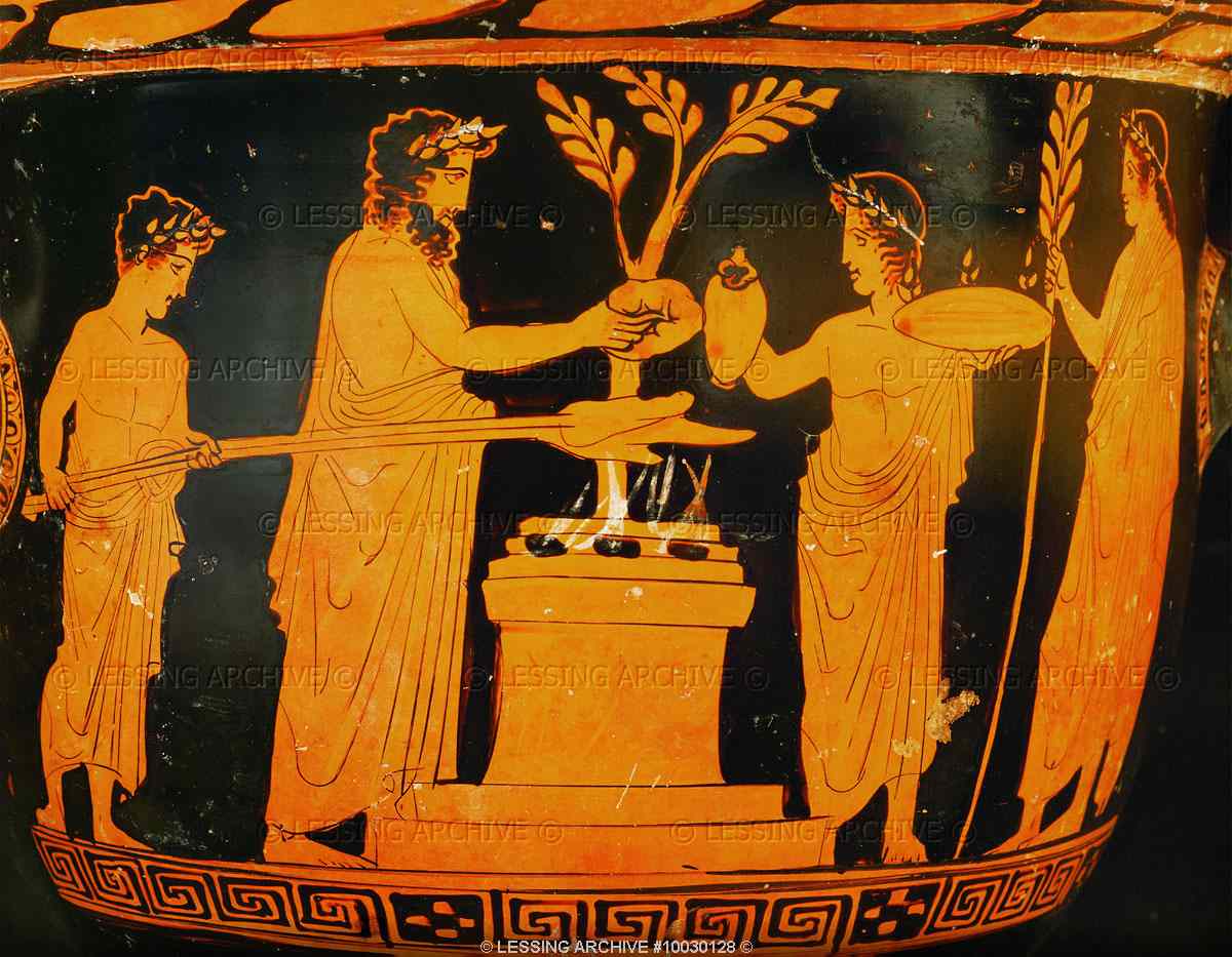 Sacrifice to Apollo – 5th BCE Vase in Louvre